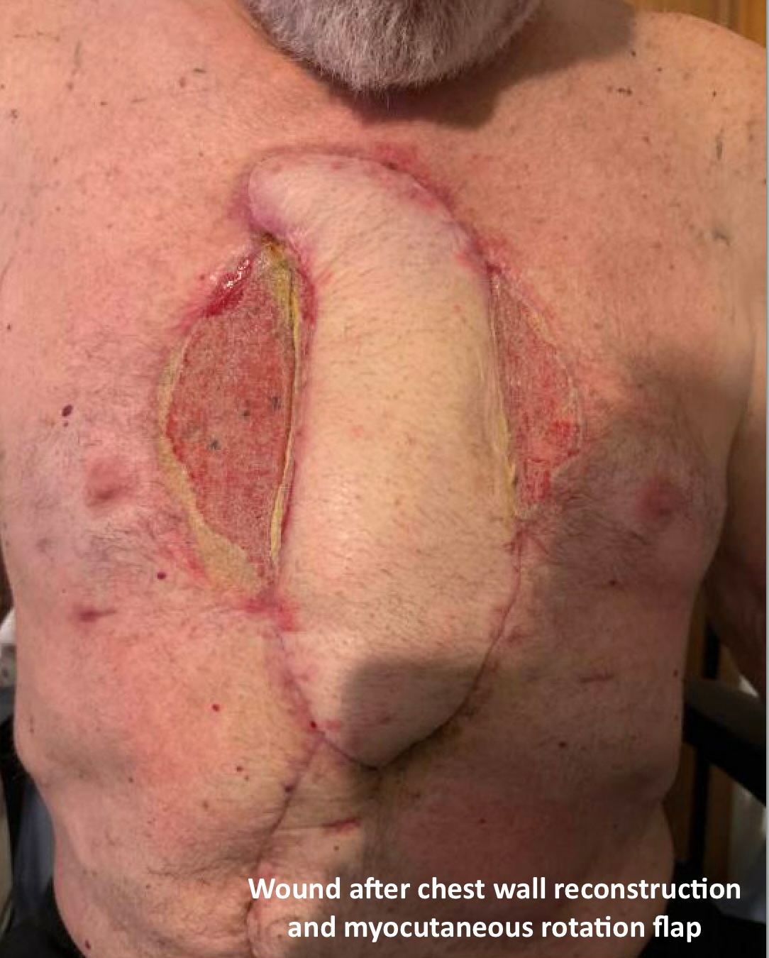 Topics: Open sternal fracture, open chest wound, chest wall malignancy, squamous cell carcinoma, sternal osteomyelitis, chronic chest wall infection.