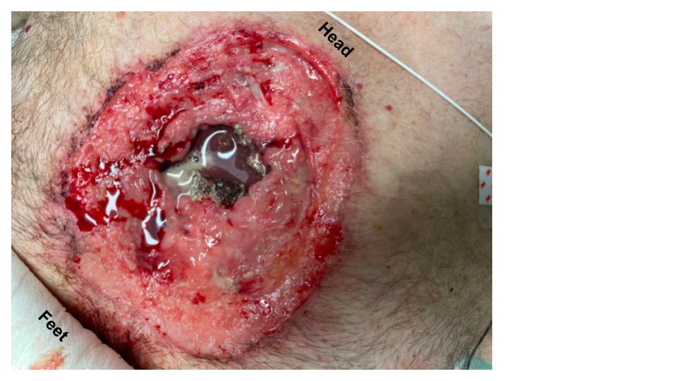 Open Chest Wound. Photo Post Surgery annotated. JETem 2026
